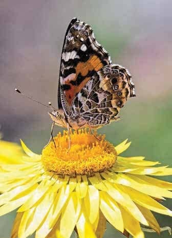 You’ll find the painted lady – loved in cool and temperate regions for its intricate mosaic wings – feeding from everlasting daisies. Its caterpillars feast on cut-leaf daisy leaves.