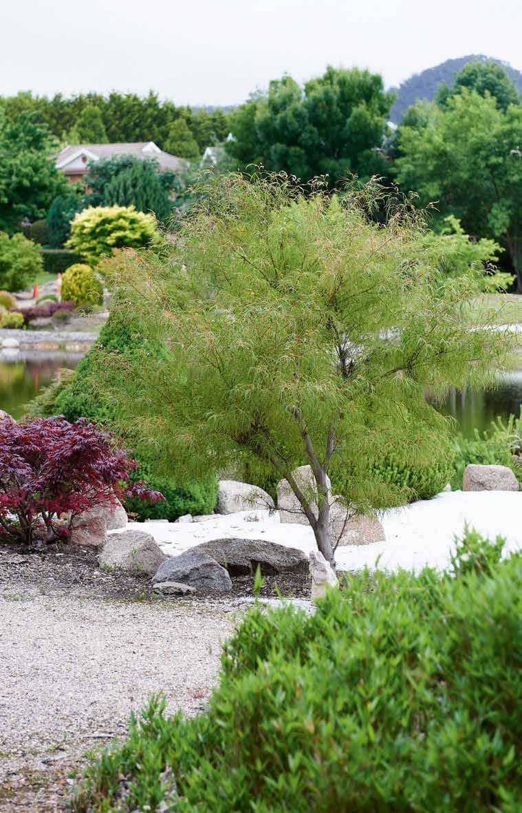 The willow shaped A. palmatum “Kinshi' stands comfortably in its Japanese-style garden, but imagine it in your yard as you enjoy a picnic under its soft canopy. So dreamy!