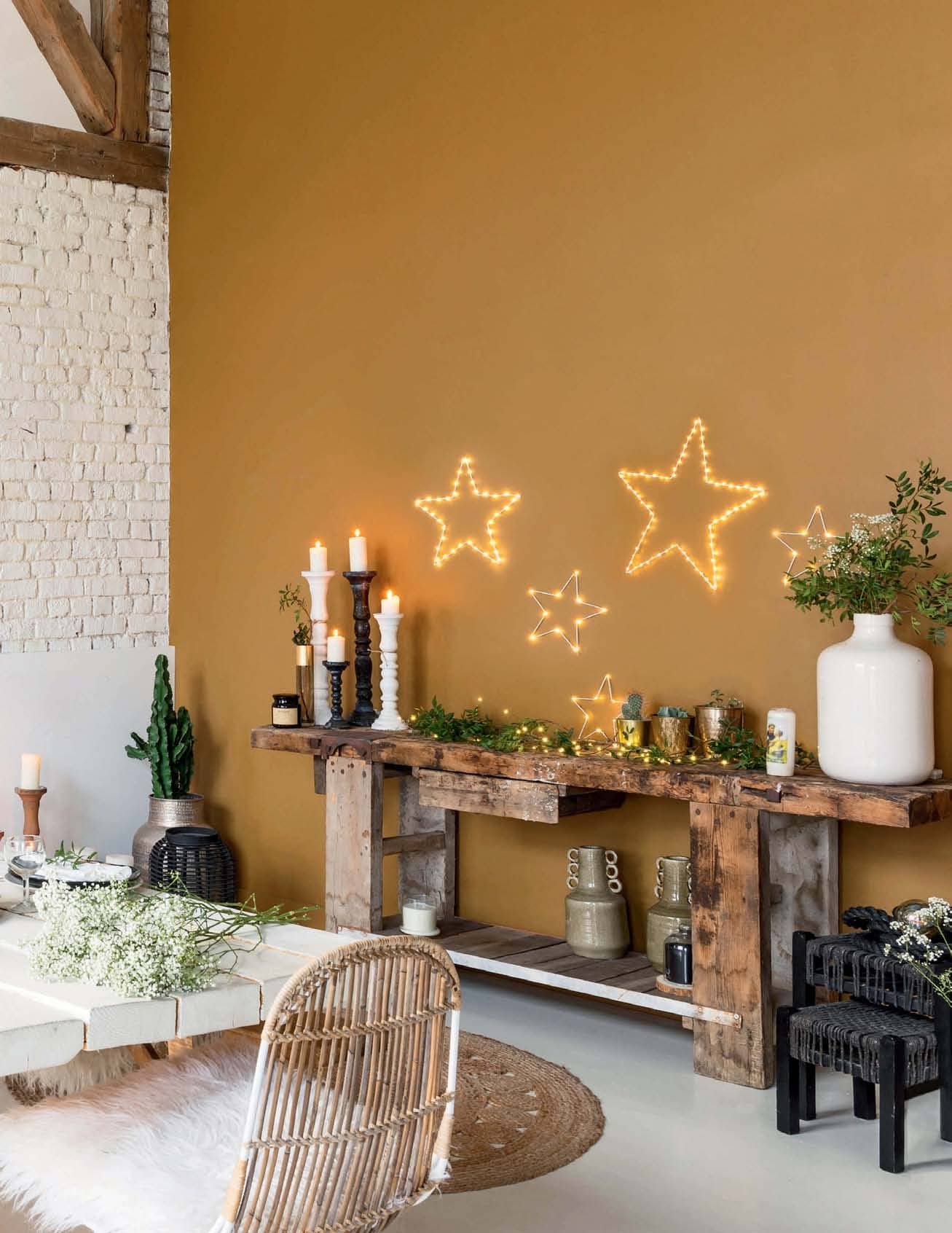 Dress your tree with soft white, gold, silver and copper baubles with masses of twinkling seed lights – magical yet relaxed!