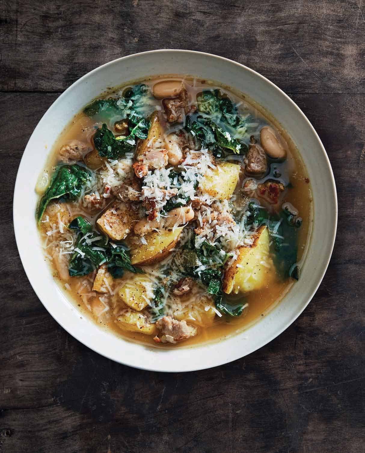SAUSAGE, POTATO, WHITE BEAN AND KALE SOUP