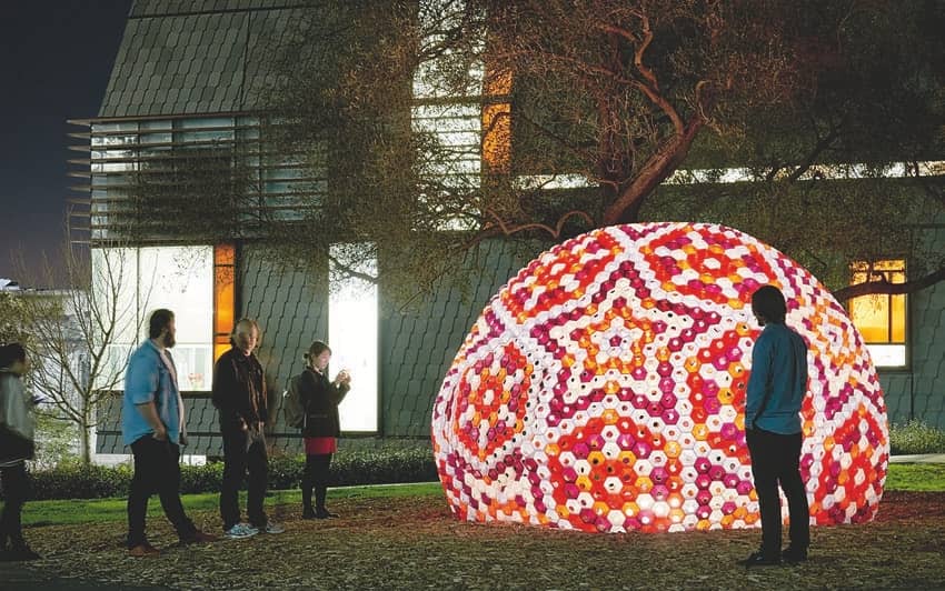 Consider the Star Lounge, a recent project by Emerging Objects, a Berkeley-based design start-up founded by Ronald Rael and Virginia San Fratello. The Star Lounge explicitly emphasises the social context of 3D printing. Rael and San Fratello’s approach was to use a hive of desktop printers, each tasked with producing a small, assembly-ready modular panel. The duo described this approach as using a “BotFarm”, in which one printer’s individual output would, in effect, be worthless, but, taken together, amounts to a new, distributed construction technique.