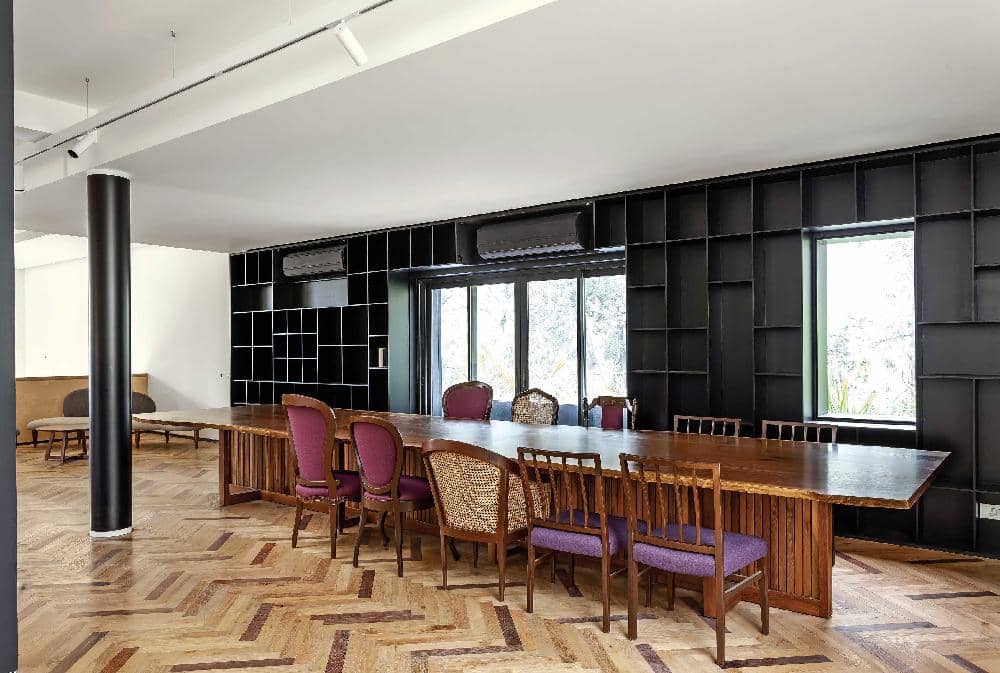 The formal dining room has a 40-seater dining table.