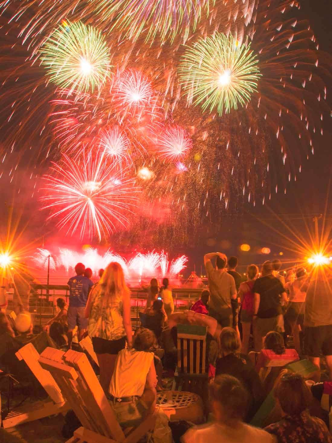 Auberge du Lac Morency ofrece hospedaje y actividades divertidas en las Laurentinas, mientras que la pirotecnia del espectáculo anual L’International des Feux Loto-Québec reúne a centenares en Montreal (p. op.).