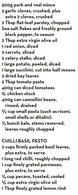 MEATBALL MINESTRONE WITH CHILLI BASIL PESTO