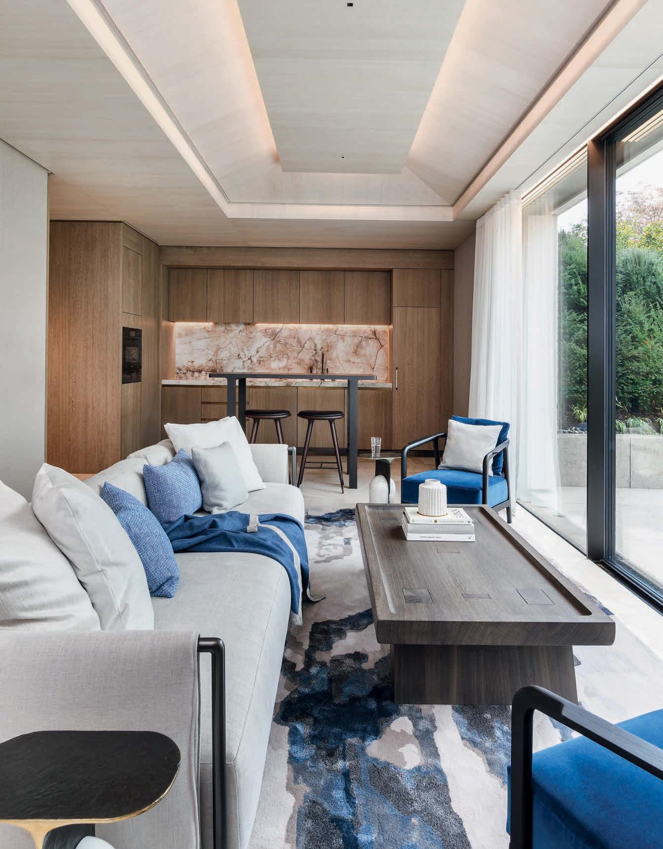 Soft illumination is a key character on this home's minimalist stage, tying materials and colours together in a timeless ensemble