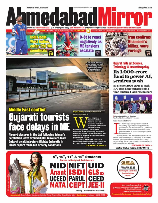 Ahmedabad Mirror is an English-language newspaper published in Ahmedabad. Kadak news with your kadak Chai. Ahmedabad Mirror is an award-winning city newspaper from Shayona Times Pvt. Ltd. which covers news, views, sports, entertainment and features. A hyper local daily that is global in its approach. Ahmedabad Mirror- one of the most preferred city-centric newspaper amongst the youth.
