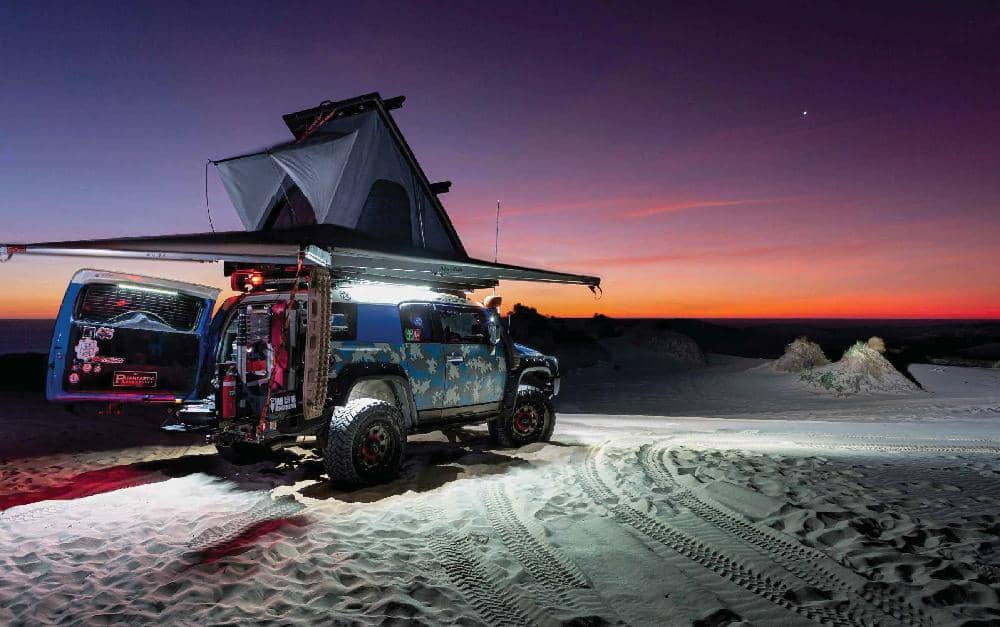A COMPLETE PLUG-AND-PLAY LITHIUM DUAL BATTERY SYSTEM, PAIRED WITH SOLAR, FRIDGE AND INDUCTION COOKING, HAS TRANSFORMED THIS HILUX INTO A SELF-SUFFICIENT TOURING MACHINE