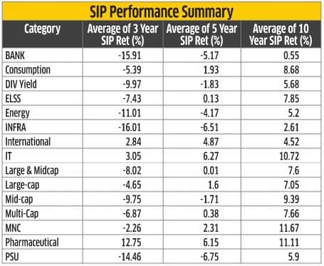 The SIP returns for equity investors in the last three and five years on an average have been negative, except for a few pockets that have generated positive SIP returns. Even in a 10-year period, SIP returns for most of the categories failed to beat the normal bank fixed deposit returns. Investment is all about generating positive returns, if not in a shorter period then definitely over a longer duration. But if even after five years you are staring at negative returns on your investment, there definitely seems to be a need to re-strategize your wealth creation plan.