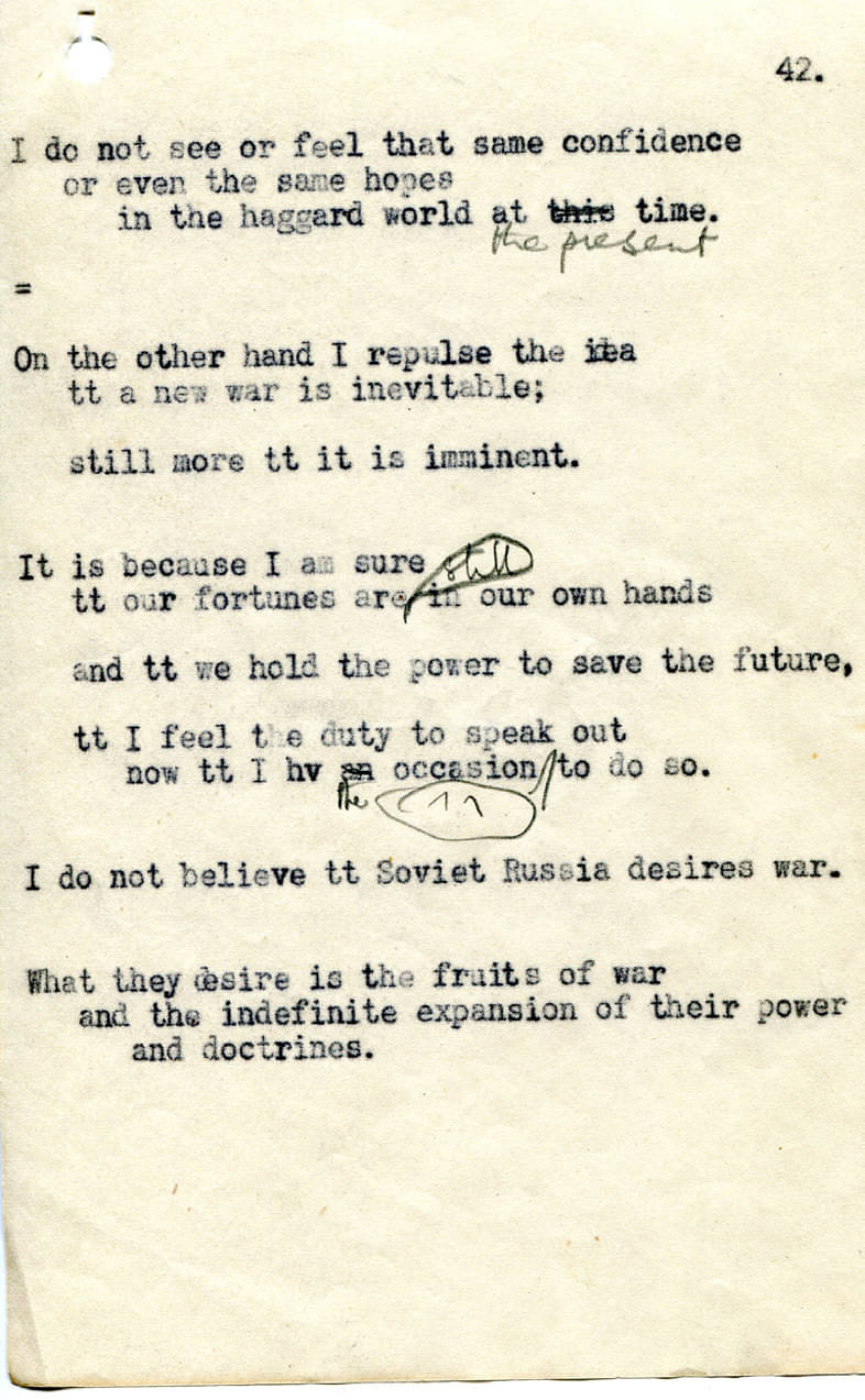 —Winston Churchill “Sinews of Peace,” 5 March 1946, Fulton, Missouri