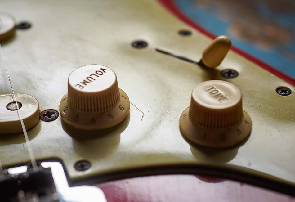 Got single-coil pickups but want to imitate fat ’bucker tone? First, add tons of overdrive to your sound via a decent mid-rich pedal – two pedals, preferably. Don’t be tempted to turn the treble down on your amp or pedals: around six to eight, no lower. Keep the guitar’s volume up full, but knock the bridge pickup tone control down to about half or lower. Sounds much more like a humbucker, right? Vintage-style Strats don’t have a tone pot wire to the bridge pickup, so you’ll need to mod this.