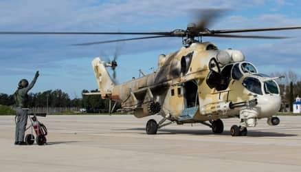 Twelve Mi-35P 'Hind-F' helicopters entered service in the Republic of Cyprus from August 2001 after its pilots had been trained in Russia by the Russian Army. As early as 1999 rumours had started to appear about a possible purchase of South African Rooivalk attack helicopters. A year later the Ministry of Defence turned its mind to the Russian market, after having issues to close the deal with South Africa. The National Guard was then initially interested in the Kamov Ka-50 (NATO codename 'Hokum'), but a study concluded that the Mi-24 'Hind' or Mi-28 'Havoc' would better suit its needs. American attack helicopters were never considered due to an arms embargo that has been in force since the 1974 invasion. That embargo was partially lifted in 2015, but only for defensive weapons. A European country allegedly offered to sell attack helicopters, but this never materialised and the Cypriot National Guard opted for the Mi-35P Hind, an export designation of the Mi-24P. The Mi-35's presence in the Cypriot National Guard was initially kept secret until the next year when they appeared in a fly-past during a general's funeral. The squadron became fully operational during that same year.