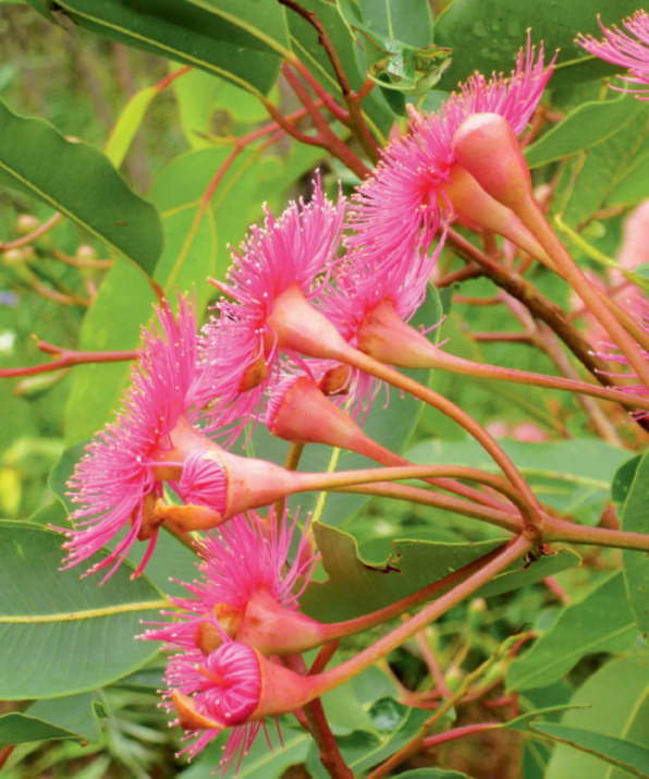 Eucalypts have great ornamental value, from their beautiful bark and foliage to showy flowers and intricate seed pods. Eucalypt blossoms have a characteristic appearance, comprising many stamens instead of petals.