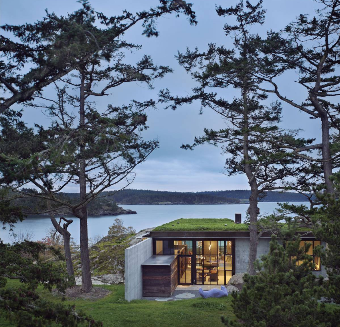 Debido al afecto del propietario por la piedra, inspiró el diseño de su propiedad usando ese material. concebido como un refugio enclavado en la roca, La Pierre (palabra francesa para piedra) celebra la materialidad del sitio. Desde ciertos ángulos, la casa -con sus materiales en bruto, que abarca piedra, techo verde, follaje y sus alrededore-, casi desaparece en la naturaleza.