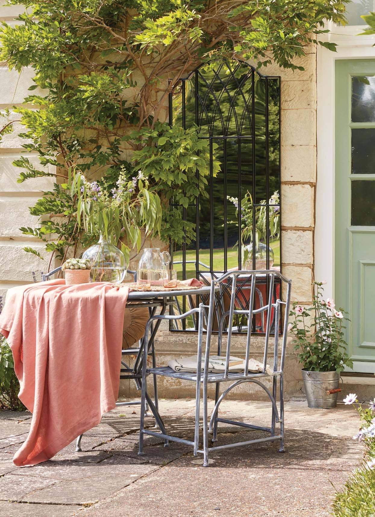 An outdoor mirror will make your garden look bigger than it really is. Create your own using an old gate or some painted trellis mounted onto a piece of mirrored board.