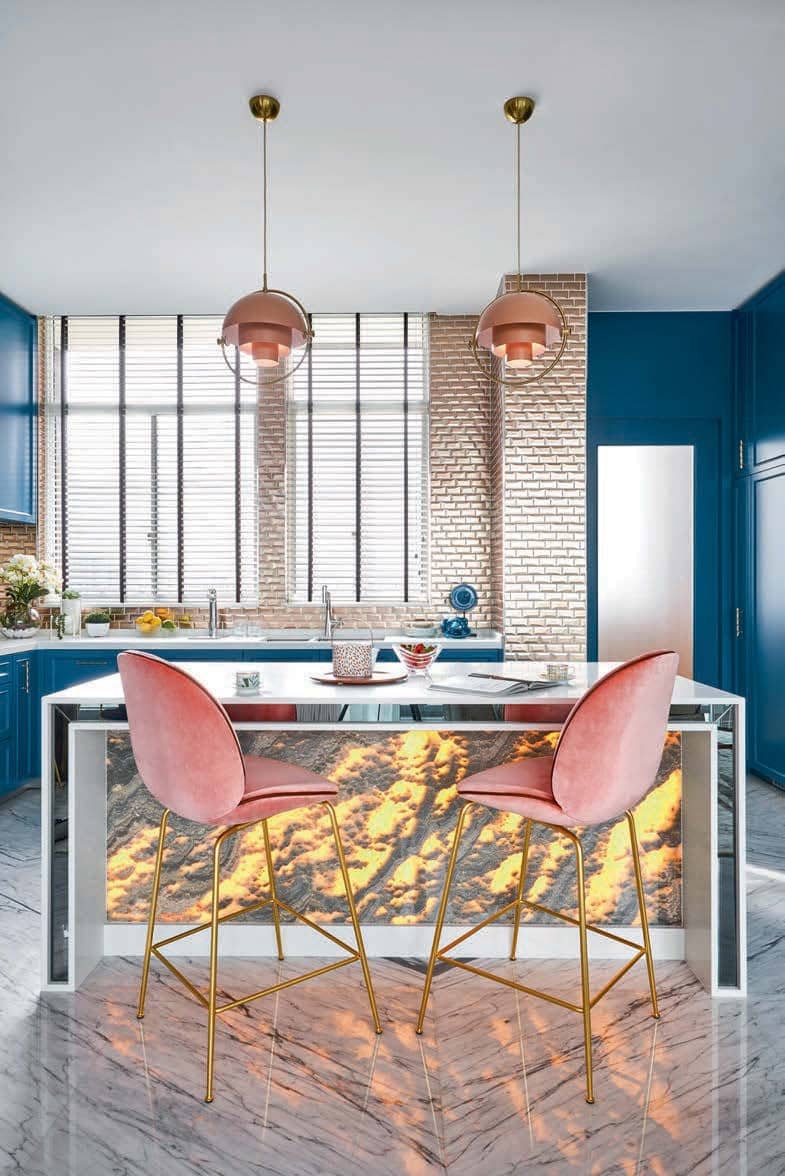 Lino and Kavita stand at the ready, greeting all who step into the foyer. With luggage in hand, the duo—actually a pair of sculptures by artist Bruno Catalano— evoke a sense of curiosity and adventure. This whimsical mood is exactly what the homeowners aim to convey in their 2,347sqft abode in the Principal Garden condominium, where they live with their young daughter.