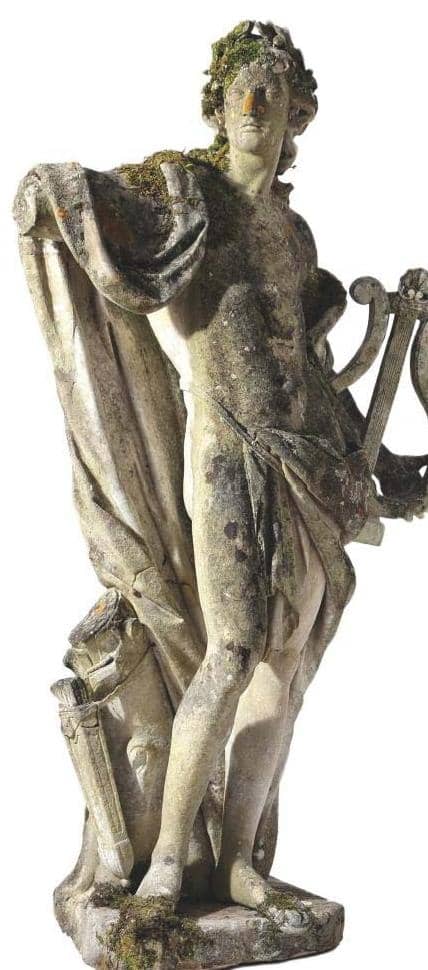 Large and traditional items also did well at this event. Vagabond Antiques of Fittleworth, West Sussex, for instance, parted with a collection of 18th-century staddle stones priced at £3,500 to a new customer; a life-sized 18th-century carved stone figure of Apollo on its original plinth (Fig 1), ticketed at £32,000; an 18th–century Italian painted chest of drawers at £4,600; a reclining leather Victorian armchair; several upholstery items; and ‘a really nice George III period lacquered chinoiserie chest at £5,500’.