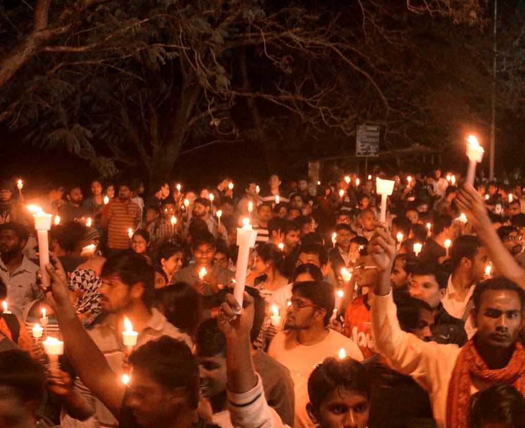 A candlelight rally by students in Hyderabad on the eve of Rohith’s birthday on January 30. (Left) At the memorial to Rohith Vemula at the University of Hyderabad.lapses by the administration on issues ranging from allotting a PhD guide on time to constant undergrading, and squeezing of grants. In Rohith’s case the suicide was because of extreme punitive measures. The personal circumstances of these students were difficult enough. The university has a responsibility to be sensitive to such students’ needs in order to achieve its own higher-education goals, which reflect the ideals of inclusive growth.