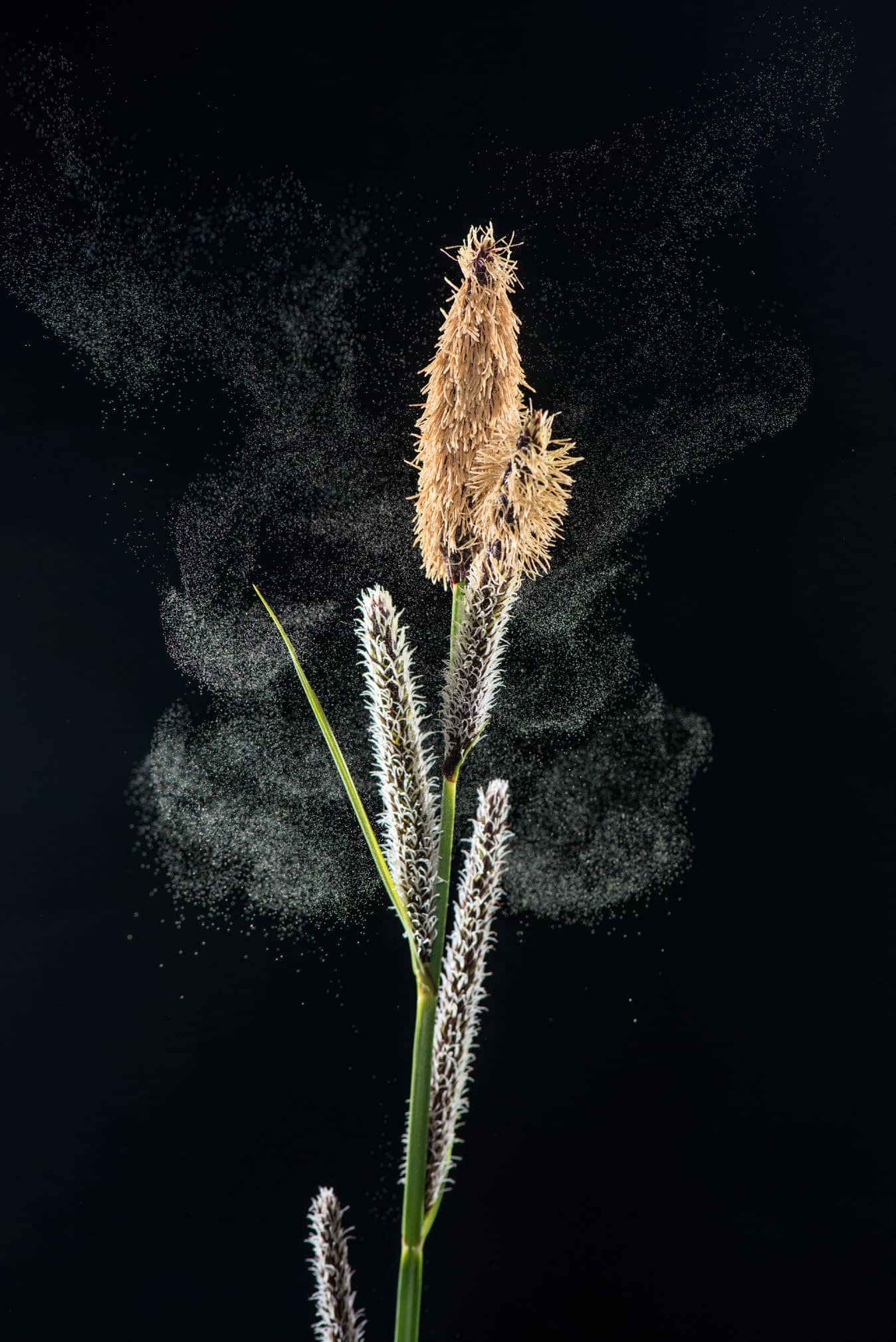 This was shot in controlled conditions in a studio. The specimen needed to be selected on the right day, when it was ‘ripe’ enough to emit the pollen. Two small flashguns were used to backlight the pollen, and another to provide some detail in the front.