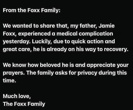 In the wake of an April 11 collapse on the Back in Action movie set, Jamie has received roundApp the-clock care at the Georgia facility. Daughter Corinne, 29, initially announced her dad had experienced a "medical complication," without revealing any of the details.
