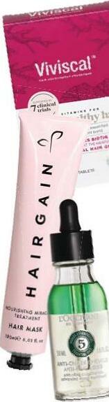 Noticed more strands than usual on your hairbrush? Stress levels, our health and our age can all trigger hair shedding. To support new growth, try popping a hair supplement like Viviscal Healthy Hair Supplement for Women, £29.99 for 30 tablets, Holland & Barrett. They contain specific nutrients to ensure that your body is getting everything it needs to grow healthy strands. On a topical level, L'Occitane Anti-Hair Loss Serum, £34, uk.loccitane.com, helps to wake up sleepy hair follicles and create the optimum scalp condition for new growth. When your locks are thinning, you want to take extra care of the hair you do have, and Hair Gain Hair Mask, £32, hairgainnow.com, will help to keep it strong and hydrated.