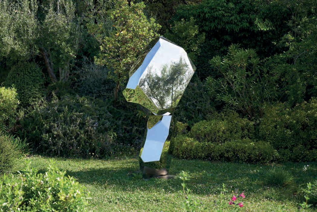 Arik Levy y Zoé Ouvrier ©Florian Keinefenn. A su derecha, pieza de Arik, expuesta en el parque de esculturas abierto al público en los jardines de su casa en la Provenza. Abajo, butaca diseñada por Levy en 2015 para Ton.