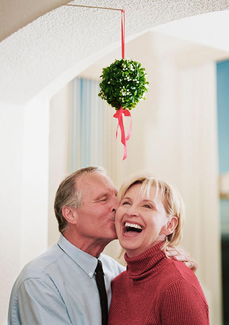 Cualquiera bajo el muérdago es susceptible de ser besado. Esto forma parte de la tradición en Gran Bretaña. Con cada beso se recoge una baya. Si no hay más bayas, se acaban los besos.