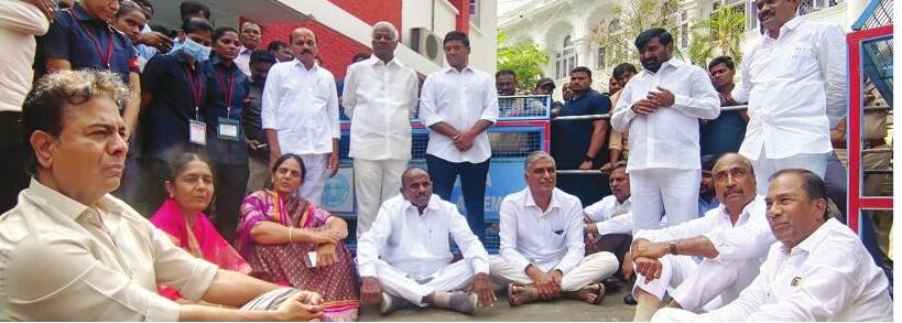 నిరసన తెలుపుతున్న బీఆర్ఎస్ ఎమ్మెల్యేలు