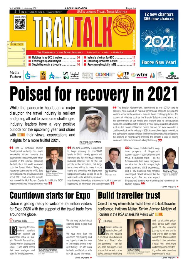 Grab this January 2021 issue of TravTalk Middle East to read more about: -Maldives lures GCC travellers-06 -Exploring truly Asia Malaysia-08 -Seychelles remain a favourite-10 …and Lots more.