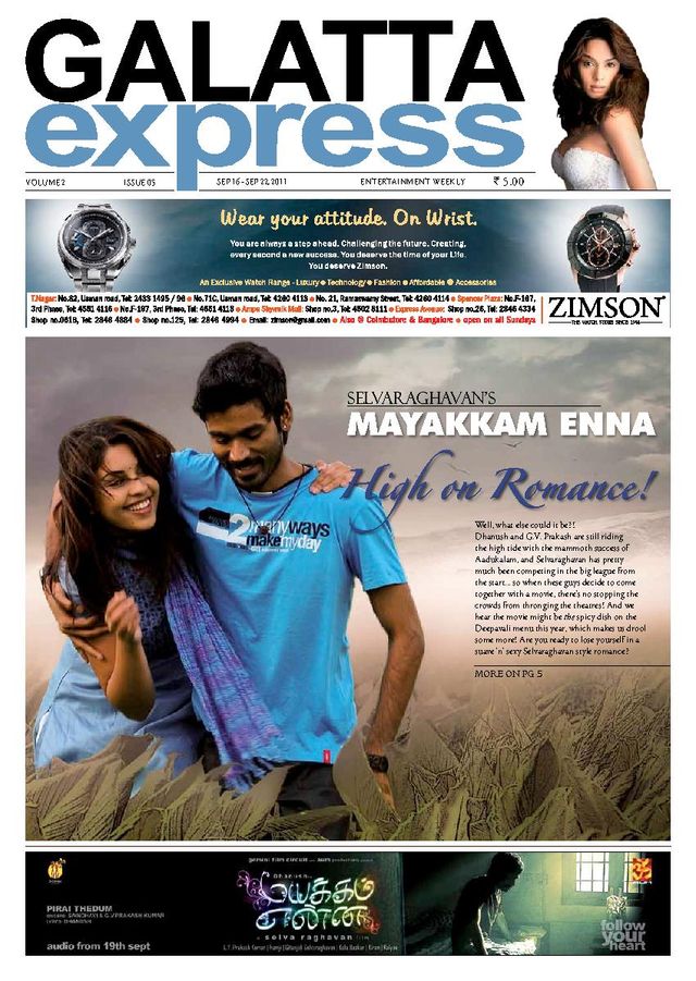 Selvaragavan\'s Mayakkam enna high on romance, Mallika is our Munni, Karthi talks Tolly, Rajni and Family disapprove, G3 events and more...