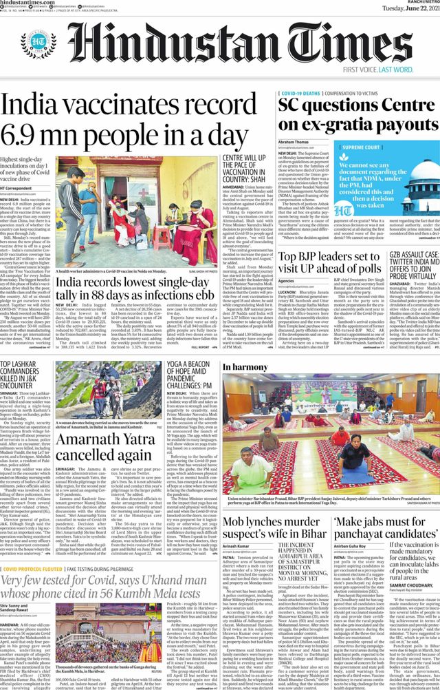 Hindustan Times Ranchi - June 22, 2021