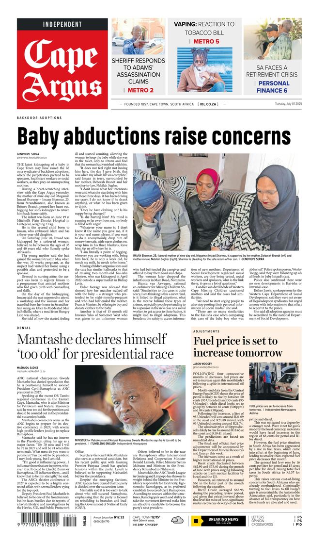 The Cape Argus is perfectly positioned to play an important role as a bridge that attempts to connect the diverse communities of Cape Town as they set about finding common ground from Khayelitsha to Constantia. It is a meeting place where readers, regardless of their race, sex colour or creed can feel comfortable and deal with their fellow-citizens on an equal footing. It is a rare privilege to edit a newspaper that essentially writes itself once we have answered the key question: what will the community be talking about today?