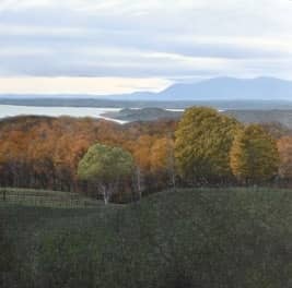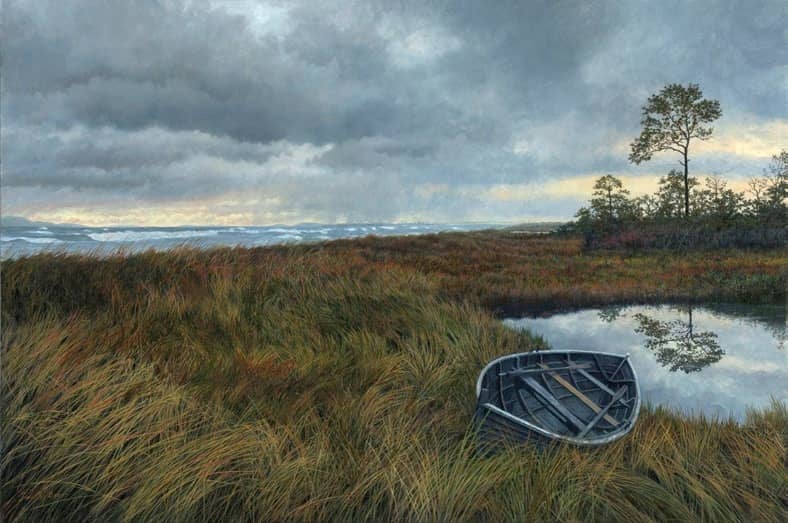 Eileen Murphy has spent her life along the Hudson in Columbia County, home of Olana. She observes, “The American landscape has shaped us as a nation while reflecting us back onto ourselves. This is a phenomenon that I try to capture in my paintings. I make extremely detailed landscapes, devoid of people, that have the uneasy feeling of something important having happened, or something about to happen. The viewer naturally projects his or her own associations and experiences onto the scene.”