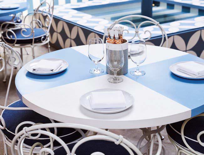 “Terzini, who is proud of his Italian and Mediterranean roots, wanted to bring great, fresh Italian food to Bali along with his style of hospitality and drinks,” says Pickering. “We were inspired by the courtyard restaurants and bars of Capri and the Amalfi Coast. The fresh colours, rubber plants popular in the 1960s, fountains and super graphics were decontextualised and reinterpreted to create something that had never existed.”
