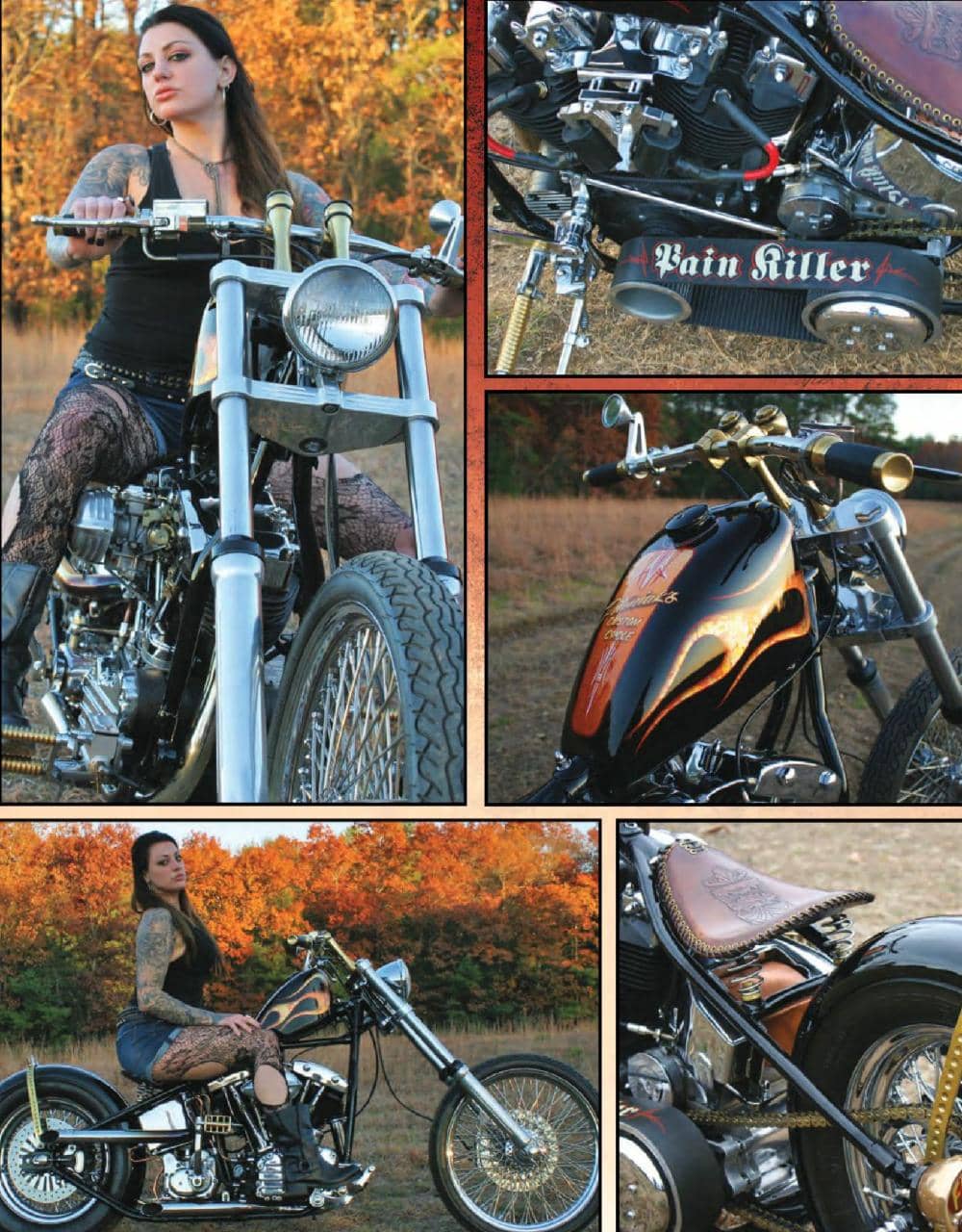 The scooter has been reincarnated a few times in different frames, but when Rich started his business, Pitoniak’s Custom Cycles in 2004, he wanted to build a bike to be a calling card for his shop. And what a calling card! Painkiller was created in the style that Rich likes best; a classic old school, less-is-more chopper.
