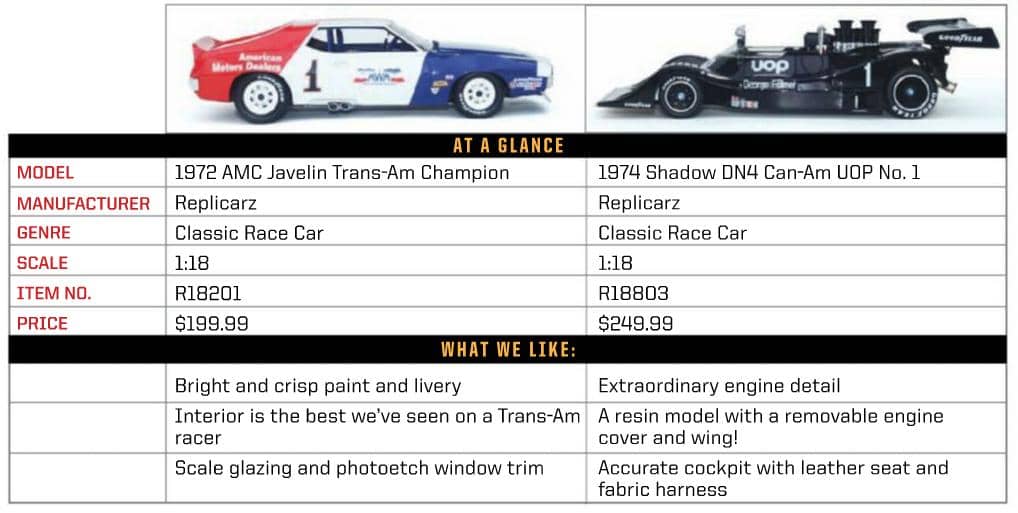 Replicarz George Follmer 1972 AMC Javelin and 1974 Shadow DN4