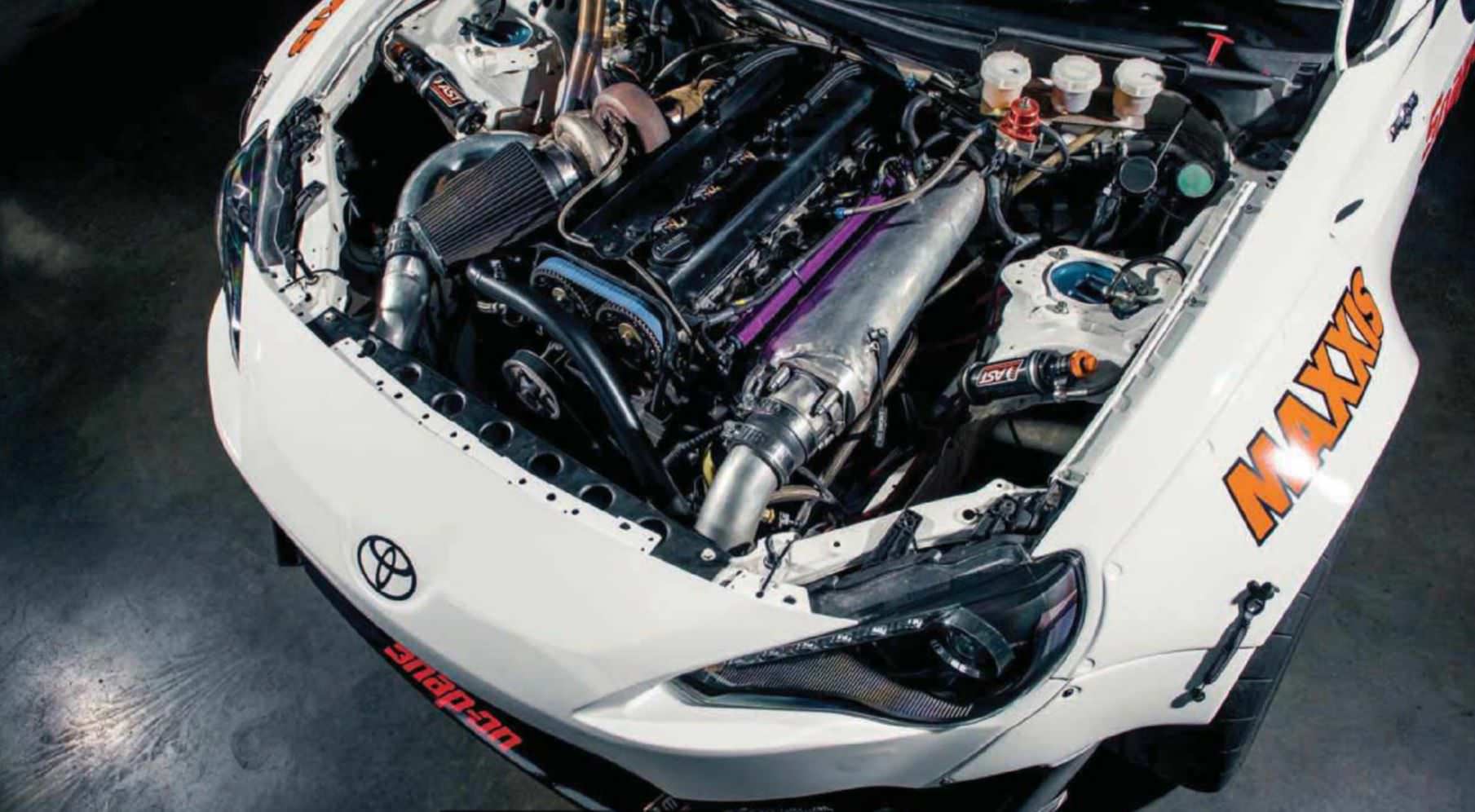 It’s driven by Team Japspeed’s Paul ‘Smokey’ Smith, a name that should be familiar to anyone with an interest in UK drifting. The Team Japspeed driver shot to fame in 2012 when he became the SuperPro Champion of the British Drift Championship. Paul rose to the summit of the BDC behind the wheel of a Nissan S15 Silvia. Now this is his latest build. A Toyota GT86 that was 18 months in the making. Under the bonnet is a Toyota engine, but not the original two-litre naturally-aspirated ‘boxer’ 4UGSE. Oh no, that’s long gone…