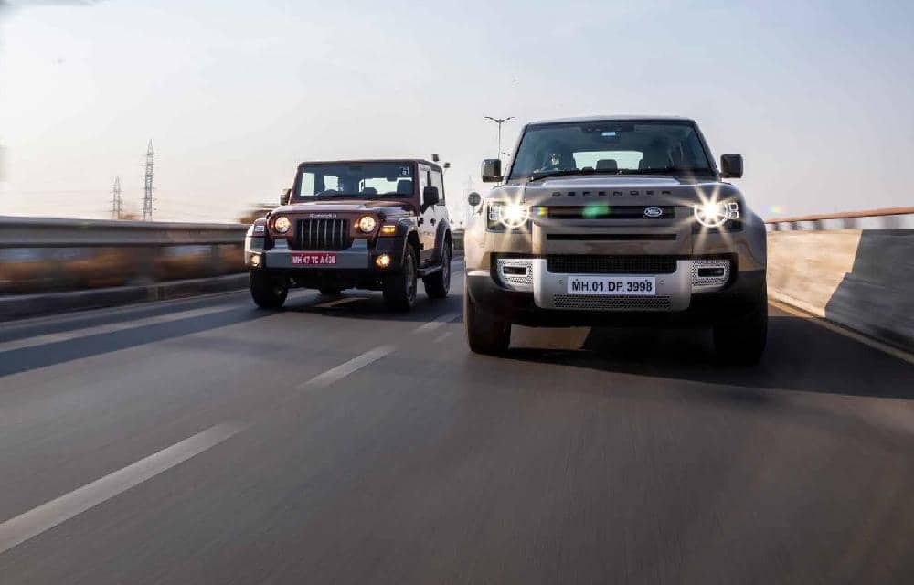 Sand, snow, and rocks? Broken paver blocks, cracked concrete and questionable tarmac, that’s your ideal mode selector,’ I thought as the Defender softly thudded over yet another unavoidable section of Mumbai’s infrastructure. This Land Rover’s sophistication was quietly rubbing off on me, too, as I noticed myself making remarks to an imaginary butler; ‘I say, Jeeves, isn’t that Thar too close to our posh posterior?’ The Defender’s excellent ClearSight rear-view mirror was always filled with the Thar’s face, its bumper a chin that Jay Leno would be proud of. But what were we doing in South Bombay with these two unlikely partners for a day?