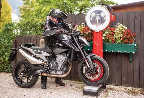 In fact, the 890 project dates back to 2012 when KTM engineers first began work on creating the LC8c parallel-twin motor. ‘We always intended to develop a 790 Duke R which was in our planning from the start,’ states Sinke. ‘But then during the development programme it got to the point that we weren’t happy with our prototype of this — it wasn’t enough R, not enough KTM. So we decided to produce just the 790 Duke to start with, and then go full attack on the R, and make it what we believe a KTM Duke R should be, if necessary with a bigger engine. So we basically tore up the spec sheet of the original, and went back to the drawing board to figure out how far we could take that engine and that chassis — and the 890 Duke R is the result.’