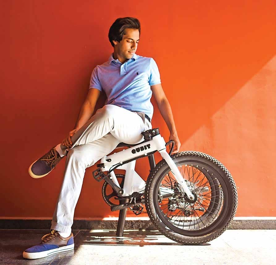 The Qubit X2 folding electric bicycle from Coppernicus Mobility Pvt. Ltd, a Mangalore based company, is among the least complicated e- cycles because it has only one single chain ring. That means you need to change gears using the shifters on the right side of the handlebar. The shifters are engaged with your index finger and your thumb. The Qubit X2 has 7 gears covering all riding needs and costs Rs 69,990.