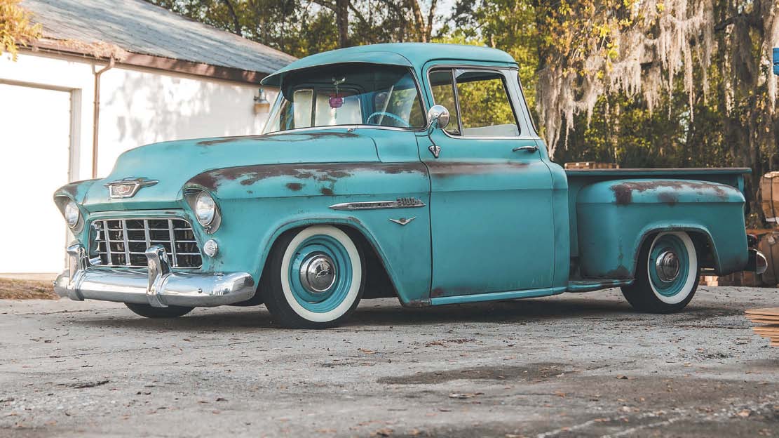 IF YOU SEARCH “LOWLA” ON URBAN DICTIONARY’S WEBSITE, SHE’S DEFINED AS REALLY SWEET AND KIND GIRL WHO IS HOT! She is the leader of her friends and the most popular person in school. You don’t want to mess with a Lowla, especially when she’s someone’s love. In this case, Lowla is a ’55 Chevy 3100 owned by Miranda and Jason Clark in Deland, Florida. Lowla was meant to be a low-budget build with a cap of $6,500 on modifications. The mission was accomplished, and their pride and joy look amazing.
