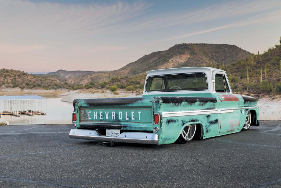 WHEN IT COMES TO A WINNING FORMULA, THERE’S JUST SOMETHING ABOUT A PERFECTLY SLAMMED C10 SPORTING THE RIGHT WHEEL/TIRE COMBO, A GORGEOUS PATINA FINISH AND THAT DIESEL CHUGGA CHUGGA. Wait, what? That’s right folks. Morgan Youngberg’s 1966 Chevy C10 may look like “just another patina C10” at first glance, but that’s where judging a book by its cover will get you into trouble.