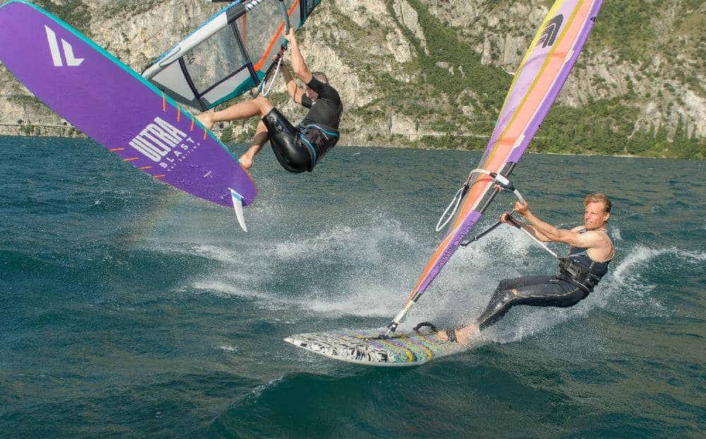 Craig (left) and Klaas (right) blasting in Lake Garda. PHOTO Ronny Kiaulehn.