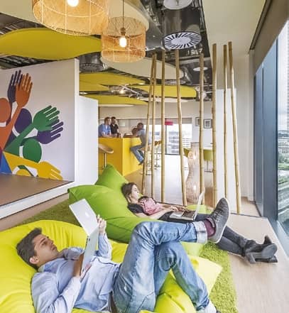 Hace 50 años, la mayoría de las oficinas eran grises, sin color ni estímulos visuales, lo que provocaba estrés y depresión en muchos empleados. Hoy, los espacios de muchas oficinas generan emociones positivas en las personas, que se traducen en salud y felicidad.