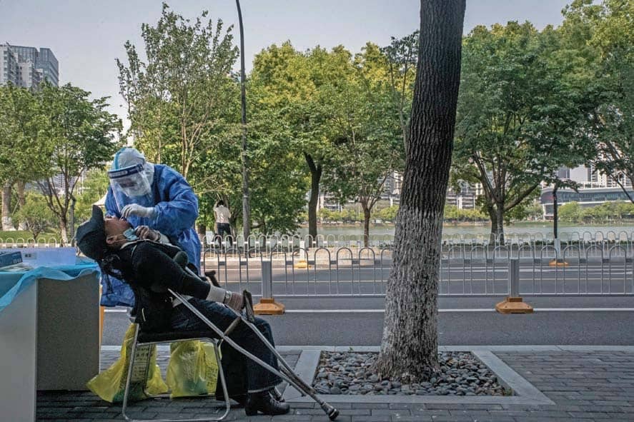 Daily routines at the facility, which reopened on March 28 after stopping for over two months because of the coronavirus pandemic that began in this central Chinese city, have been entirely reengineered to minimize the risk of infection. Before returning to the site, staff members had to be tested both for the virus and for antibodies that indicate past illness, and they had to wait for their results in isolation at a dedicated dormitory. Once cleared, they returned to work to find the capacity of meeting rooms built for six reduced to three and the formerly communal cafeteria tables partitioned off by vertical barriers covered in reminders to avoid conversation. Signs everywhere indicate when areas were last disinfected, and robots are deployed wherever possible to transport supplies, so as to reduce the number of people moving from place to place. Elevators, too, are an artifact of the Before Times; everyone now has to take the stairs, keeping their distance from others all the way.