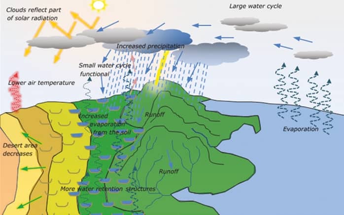 In the article ‘The hidden role of water on earth’ featured in the January edition of Stockfarm, we discussed the crucial but often ignored role that water plays in making earth habitable. This article, the second in the series, provides a brief overview of the steps that can be taken to ensure that enough water is available in the right places to have a stabilising effect on the climate, which will also make the land more drought-proof.