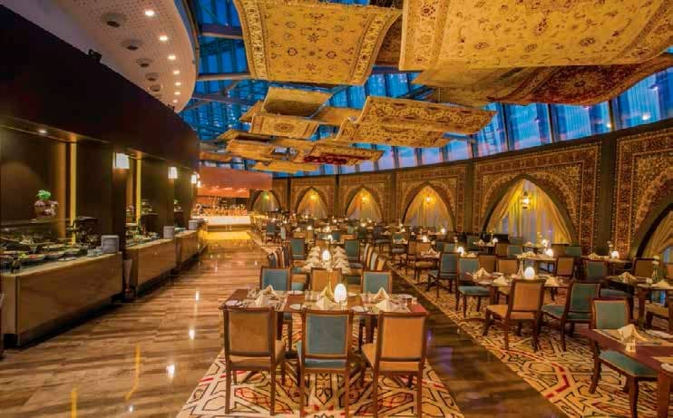 El restaurante Flying Carpet ofrece a los comensales una cocina abierta, con decoración catarí que se acompaña de una gastronomía amplia e internacional con noches temáticas.