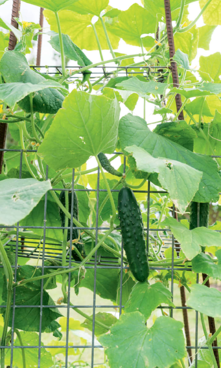 Although cucumbers grow on a vine, they can be planted in any size vegetable garden. These large climbers will even grow happily up a tripod in a large pot.