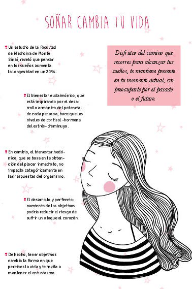 Intenta este ejercicio: piensa en uno de los más grandes sueños que posees y que más te entusiasma, ahora imagina lo que harás una vez que se cristalice; mientras lo haces, observa cómo cada parte de tu cuerpo y tu mente empieza a cambiar. Las ideas empiezan a fluir con mayor facilidad, encuentras soluciones a posibles escenarios que se te presentarán, tu rostro permite que se asome la alegría y tranquilidad, también tu cuerpo experimenta un genuino bienestar que permanece e, incluso, deja revolucionada tu mente.