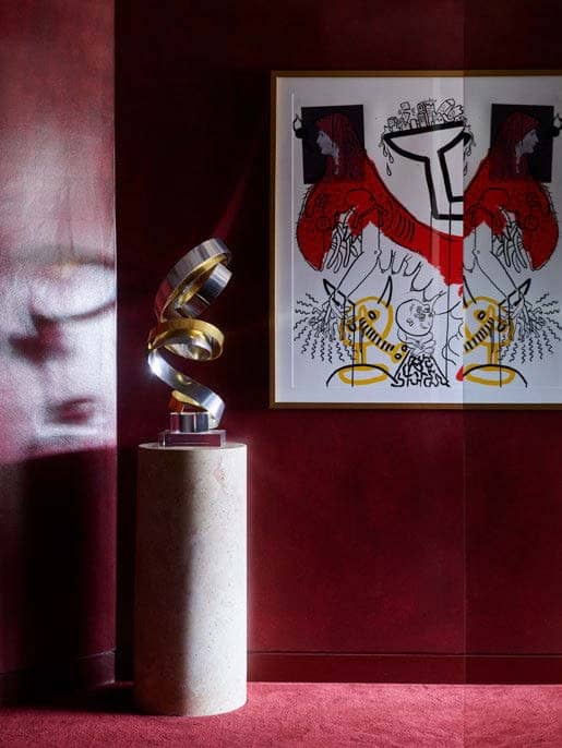 Greg Natale rolled out the red carpet for his home’s glamorous redesign, with striking works of art and emblems of the disco era – from YSL’s ‘Opium’ to Halston – reflected in its enigmatic mirrored walls.
