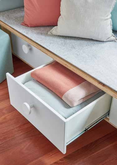 3 OLD-SCHOOL WINDOW SEATS had hinged lids and storage space inside. Make yours modern with easy-access drawers. They’re a great spot for beach towels, games and craft supplies.